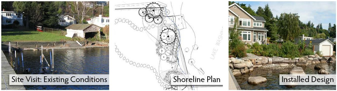 Our biologists and landscape architects can help create a design that brings out your site’s natural character and benefits the surrounding environment. We work with freshwater and marine shoreline homeowners across Washington State, including projects on Lake Washington, Lake Sammamish, Lake Chelan, and Lake Wenatchee that range from simple shoreline plantings to bulkhead removal and beach cove design.